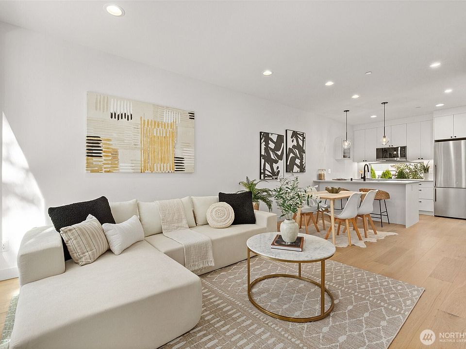 Where Distinction Meets Design in the Heart of West Seattle. A home that stands apart from the ordinary, this single-family residence has no HOA dues, offering 3 bedrooms, soaring ceilings, and walls of natural light. The thoughtful floor plan includes a flex space on the main-level with a dedicated shower, an open-concept great room and gourmet kitchen, plus a primary suite and 3rd BR/office with shower on the upper level. Contemporary upgrades include motorized shades, efficient AC units, and a Level 2 EV charger. Crown your evenings on the rooftop deck with sweeping vistas of the Sound and the Olympics, paired with unparalleled walkability to California Ave's most sought-after amenities. Pre-inspected and move-in ready. Truly noteworthy.