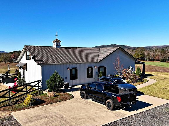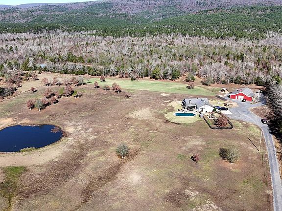 This one-of-a-kind 3 bedroom, 3 bath, 2,888 sq ft custom home by Dennis Salisbury Construction is an upscale barndominium-style retreat that perfectly blends luxury and the outdoors. Thoughtfully designed with an open living area and a dramatic wall of windows, it brings the stunning mountain views right inside, complemented by a cozy fireplace, shiplap walls, vaulted ceilings, granite countertops throughout, and gorgeous custom cabinetry. Each of the 3 bedroom suites offers its own private bath, with heated bathroom floors for added comfort, plus a small loft office, abundant built-ins, tons of storage, and even a storm shelter tucked inside the primary closet. Outside, the amenities continue with a 30x60 shop with 10-foot walls and 12x60 lean-to, extra storage garage, greenhouse, inground pool, rock patio with fire pit, and a 480 sq ft guest house over the shop - ideal for company or multi-generational living. All of this sits on 28.88 acres with breathtaking mountain views, stocked ponds, two tower hunting blinds +4 stands , national forest boundary, and excellent deer, bear, and turkey hunting - truly not a typical home, but a top-notch, meticulously built, amazing property.