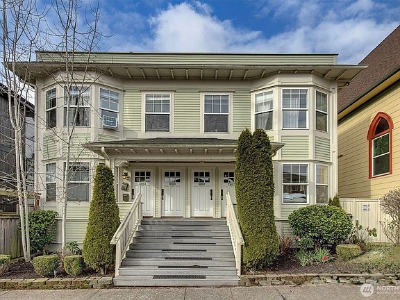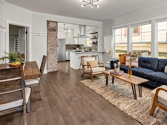 Live Large in the heart of Ballard! Sprawling 2-level townhouse-style w/ 4 large BRs. Boutique 5-unit 1910 bldg had studs-out rebuild in 2006, enjoys modern systems while preserving original charm. 9ft ceilings + luxe Craftsman details. High-end remodel w/ spacious chef’s kitchen, engineered hardwoods, exposed brick & MUCH more. Meticulously maintained. End unit lined w/ windows offers natural light. Main lvl stairway leads to huge updated lower lvl (optional separate entrance... multi-generational living? income-producing potential?). Fully-fenced shared yard, garden, patio. Dream location, 4 blocks to Ballard's best shops, eateries, farmer’s market. A home w/ Heart, true urban oasis. Pet friendly, low maintenance property, No rental cap!