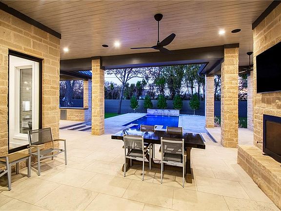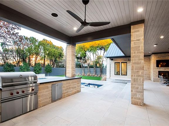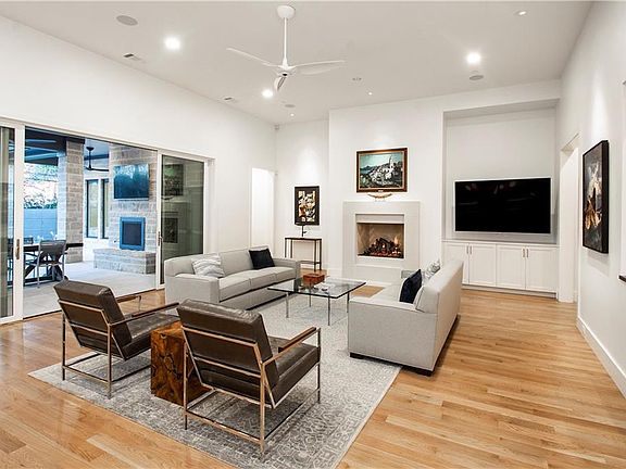 Designed & planned for privacy with no houses behind it, this home reflects a sophisticated and modernist Texas sensibility. Privacy flows to the master featuring separate his & hers baths with quartz & stone & separate walk in closets Gourmet kitchen with Quartz countertops, Wolfe, Sub Zero,& Asko appliances. Double islands open to the dining & living room overlooking the backyard, pool spa & outdoor living center with grill, TV & FP. Custom finishes throughout including smooth & sleek museum finish walls with all LED superb art lighting, Kolbe windows, oak wood floors, 12 foot ceilings, smart home, open floor plan for today's lifestyle. Low water plants, turf yard with gravel beds & Lueders stone pavers.