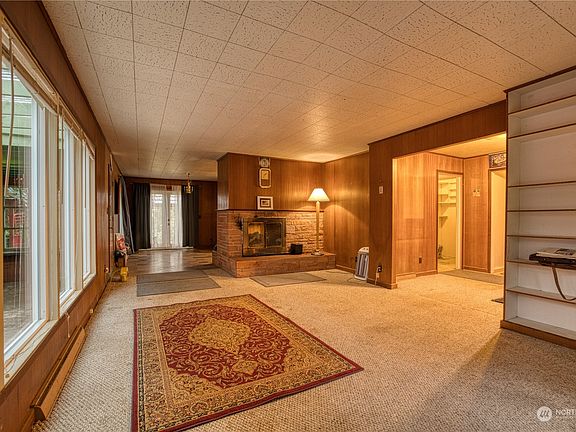 Incredible investment opportunity in Central Park! Large sprawling home on a little over an acre with creek and small pond in the back yard. Besides the 3 bedrooms on the main level there are 2 unfinished bonus rooms in the attic and 2 to 4 unfinished rooms in the basement that adds to its incredible potential. House is right off the highway but sits back far enough for perfect privacy. The detached 3 car garage can be accessed by a covered walkway from the back door. Basement is super large that could be used for a family room, rec room, or built into additional living quarters. Light wells outside basement connect to drainage system, perfect for western Washington weather. Buyer to verify.