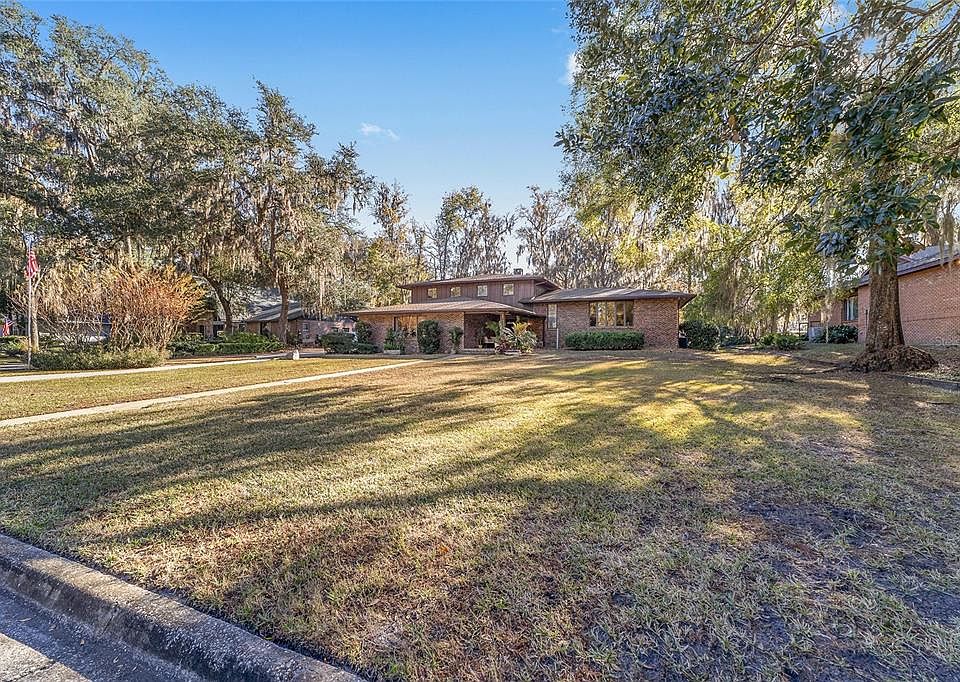 Magnificent, fully remodeled home in a quiet cul-de-sac on nearly half an acre, featuring 3 bedrooms, 3 full bathrooms, a study with private entrance (ideal as a fourth bedroom), and a Florida/gym room off the first-floor flex room. The spacious kitchen boasts abundant cabinetry, granite countertops, and a breakfast nook, with a separate dining room just steps away. The family room includes a bay window overlooking the front yard, while the flex room showcases a stunning full-wall wood-burning stone fireplace. Wood flooring throughout, no carpet. Enjoy outdoor living on the expansive screened-in back porch, plus a private courtyard and covered front porch. The primary suite offers his-and-hers sinks and walk-in closets, a makeup vanity, spa tub, walk-in shower, and water closet with bidet. Additional features include a two-car garage and golf cart garage. Conveniently located 4 miles from UF & Shands, 2 minutes to I-75 and Publix.
