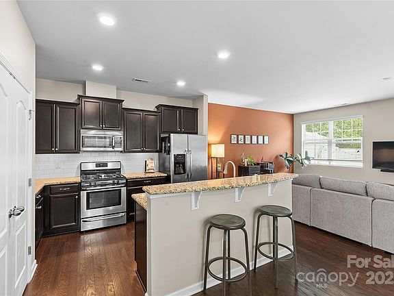 Nestled in a sought-after community, this premium end-unit townhome offers the perfect blend of style, comfort, and convenience. Backing to serene HOA-owned woods, this home provides privacy and a picturesque natural backdrop. The inviting first level features beautiful hardwood flooring throughout, creating a warm and cohesive living space. The gourmet kitchen is a true highlight, complete with granite countertops, a stylish tile backsplash, and under-cabinet lighting that enhances both function and design. Step outside to enjoy a private, fenced backyard—ideal for relaxing, entertaining, or light gardening. Upstairs, you’ll find all three bedrooms, including a spacious primary suite with ample closet space and a well-appointed en-suite bath. Two additional generously sized bedrooms offer flexibility for guests, family, or a home office. Conveniently located near the community pool and just moments from shopping, dining, and everyday amenities, this home combines modern living with peaceful surroundings.