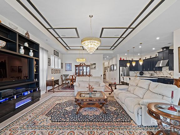 Beautiful and meticulously maintained, this stunning home offers designer finishes, spacious living areas, and access to resort-style amenities. A private office with elegant French doors provides the perfect space for working from home or quiet study. The chef’s kitchen is a true highlight, featuring a massive island with a one-bowl sink, 5-burner gas cooktop, wall oven, walk-in pantry, quartz countertops, and a porcelain marble backsplash—ideal for both everyday living and entertaining. Natural light pours into the sunroom, which extends off the living room to create a bright and airy space perfect for lounging or hosting guests. The primary bedroom suite is a peaceful retreat with dual vanities, a large tiled shower, and a custom closet organizer designed for optimal storage and convenience. Secondary bedrooms are spacious and thoughtfully designed. Bedroom 2 includes its own private bathroom, making it perfect for guests or as a mother-in-law suite. Bedroom 3 offers a generous walk-in closet, providing plenty of storage space. Throughout the home, stylish design elements such as tray ceiling accents, updated chandeliers, and 7.5 -inch luxury vinyl plank (LVP) flooring elevate the overall aesthetic. Large-format tile in wet areas adds both beauty and durability. The garage is equally impressive, featuring gleaming epoxy flooring and a utility sink for easy clean-up. This home is conveniently located near Village Commons, offering quick access to shopping, dining, and everyday essentials. As part of a vibrant community, residents can enjoy a full suite of resort-style amenities including a clubhouse, art studio, swimming pool, pickleball, bocce ball, and tennis courts. From its functional layout and thoughtful upgrades to its unbeatable location and lifestyle offerings, this home truly has it all. Don’t miss the opportunity to make it yours!