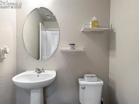 Welcome to this immaculately maintained home built in 2020. Step inside and you are greeted with all the luxuries of comfort and modern sophistication. Upon entering, you are greeted by an open floor plan design with a office to your left and a staircase to your right. As you move forward, you enter the great room that flows seamlessly from the kitchen, dining area and living room creating the perfect space for entertaining or just spending time with family and friends. The kitchen has it all, complete with granite counter tops, modern appliances and a center island with a breakfast bar. The main level also features a large half bath, mechanical closet with storage space, coat closet and access to the 2 car garage. Make your way up the stairs and you are greeted with an open loft full of light and endless possibilities. The loft features enough room to make it your whatever you desire whether it be a secondary living room, craft room, play room etc. The master suite is truly a paradise escape boasting a very large master bedroom and its own ensuite with a walk in closet, dual vanities, and an oversized luxury shower. The upstairs also contains two more large bedrooms each with their own walk in closet, the laundry room, a full bathroom, linen closet and storage closet. This home not only provides ample living space but plenty of storage place as well. Make your way out to the beautiful over sized stamped concrete patio perfect for entertaining or just relaxing on those beautiful summer evenings. The shed in the backyard offers even more additional storage space. Conveniently located on a corner lot with beautiful views of Pikes Peak from your front porch, this home embodies luxury and sophistication with the comfort of modern living.