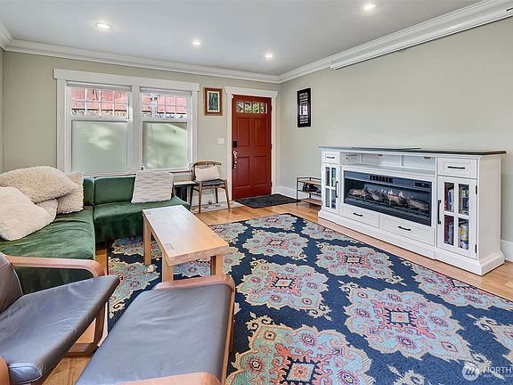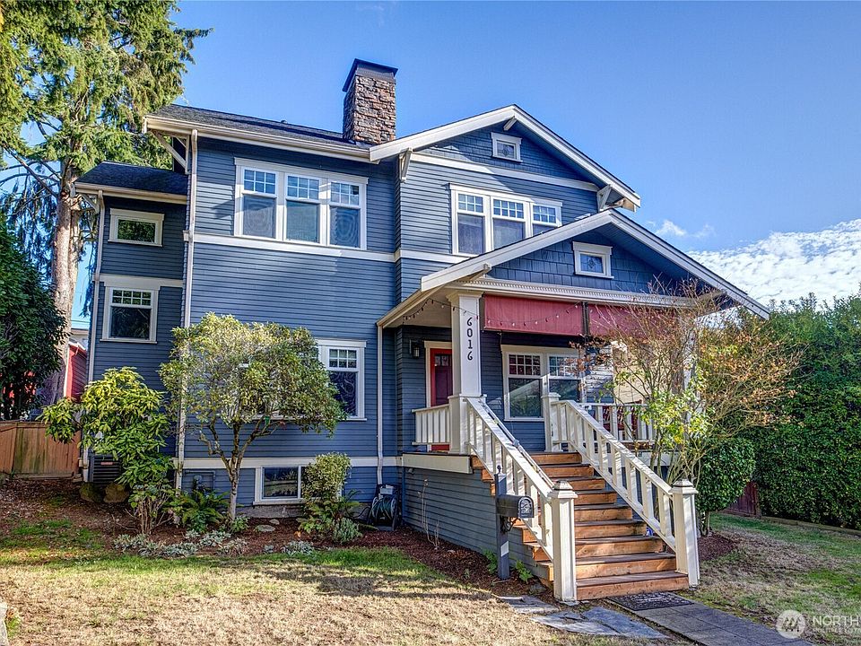 This modernized Craftsman is conveniently located in the friendly West Seattle neighborhood of Seaview between the Alaska & Morgan junctions, ideal for shopping, dining, & entertainment. Lowman & Lincoln Park are just down the hill bordering the Puget Sound. Three flrs of living space feature 4 bedrooms, 3 baths all w/radiant-heat flrs. Primary bedroom suite features a wraparound gas fireplace & an additional side room for lounging, reading, or writing. Built-in closet space, hardwood floors, vaulted ceilings. A large 6,500 sf lot allows room for a detached 2+ car garage, with electric car charging station. Add’l parking space for RV or boat. Private & fully fenced backyard + deck. And great schools! Consider a future DADU over the garage.