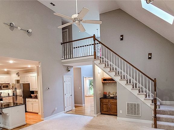 • Bay Window, Ceiling Fan(s), Cathedral Ceiling(s), Separate/Formal Dining Room, Eat-in Kitchen, Fireplace, Granite Counters, High Ceilings, Kitchen Island, Bath in Primary Bedroom, Main Level Primary, Pantry, Walk-In Closet(s)