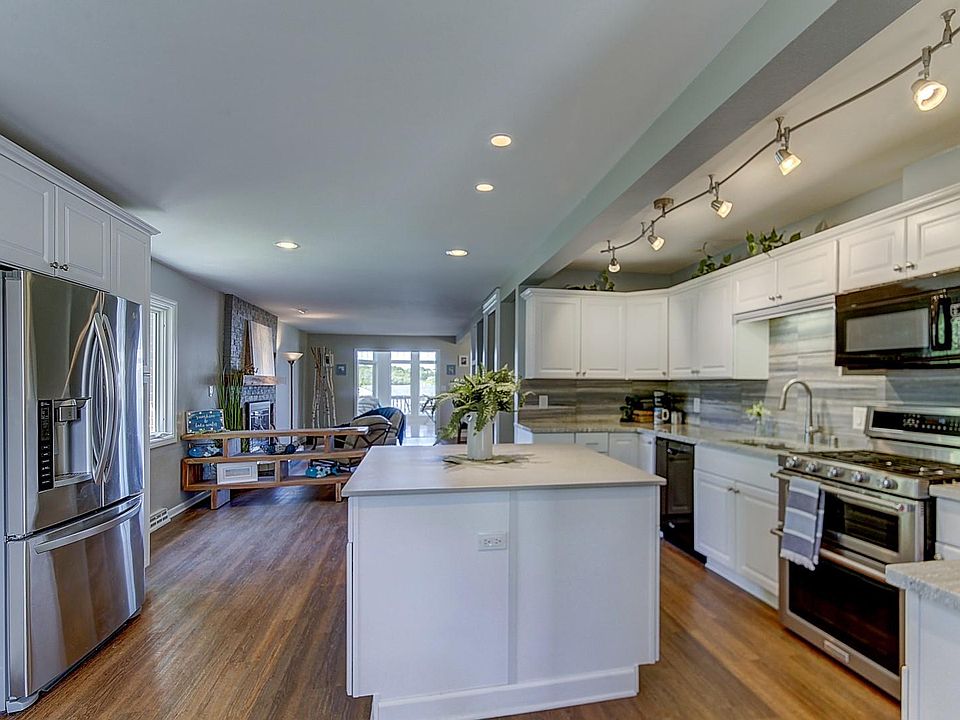 Two story Stunning Western Sunset views of Pike Lake with 60 ft of Frontage, with a large well maintained Working Boat House and large pier! Updates throughout; Kitchen with Granite, Walk-in Porcelain Shower, 2016 Furnace, Fridge, AC, Water Heater, Water Softener and Iron Curtain. In 2018 New Well pump, Oven, New Mini-Split for year-round comfort , Firepit, New Drain-tile with battery back-up Sump, New Siding on Boat house, New retaining wall at road and parking for all your friends! 2 Fireplaces (1Wood/1Gas), Huge Lakeside Deck. New Paint, Updated Lighting, Newer carpet, Granite Counters, Walk in Tile Shower,