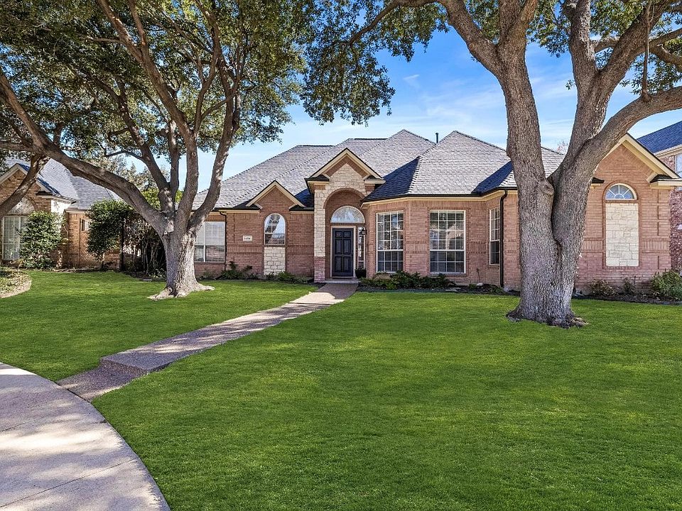 6016 Madera Court feeds into Barksdale, one of Plano’s finest elementary schools, and is nestled just steps away from Sunset Park - two advantages that make living on this cul-de-sac a special opportunity for growing families. Step inside and be greeted by a spacious open floor-plan with updated flooring and a beautifully re-imagined stone fireplace. The entry flows into the formal dining room, family room, study & kitchen. The kitchen is outfitted with granite countertops and abundant storage. A recent kitchen remodel included stainless appliances, glass subway tile backsplash, new sinks and hardware and stylish tile. The primary is a true retreat and even enjoys its own fireplace. The make-over continues in the bathroom complete with two vanities, designer tile, frameless shower and a freestanding tub. When you aren’t a few steps away at Sunset Park, you will love to relax in Madera’s backyard complete with its shaded patio or convenient turf ideal for pets or family gatherings!