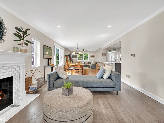 Classic Brick Georgian in highly desirable Peterson Park location. This renovated and move-in ready 3 bed/2.1 bath home features stylish and inviting vintage details with modern updates. Flooded with natural light from numerous windows with South/East/West exposure. Open concept main floor with fully renovated kitchen and powder room, formal living with beautifully redesigned wood burning fireplace and full dining room with bonus great room space excellent for entertaining. Kitchen features white shaker cabinetry, quartz countertops, stainless appliances and oversized island for prep and breakfast bar. Hardwood floors throughout first and second floor. Three generous bedrooms are found on the second floor along with newly renovated bathroom with soaking tub. The Primary Bedroom has a huge walk-in closet with a door opening to the outside which offers an opportunity to build a future deck/green roof on the lower-level rooftop.The lower level was finished for additional living space or 4th bedroom including full bathroom with oversized walk-in shower. Large storage and utility room with side by side washer/dryer. Enjoy the verdant green yard with perennials, annuals, and mature trees with plenty of space to play and grow. Idyllic setting right across from North Park Village Nature Center and neighboring Peterson Park with its playground, soccer fields, restaurants, shopping and easy access to expressway. Alarmist Brewery and Taproom, Whole Foods, Starbucks, top-rated Blue Ribbon-earning Solomon Elementary school, Northside College Prep High School, Farmers market, Home Depot, Lincoln Village Shopping Center and more!