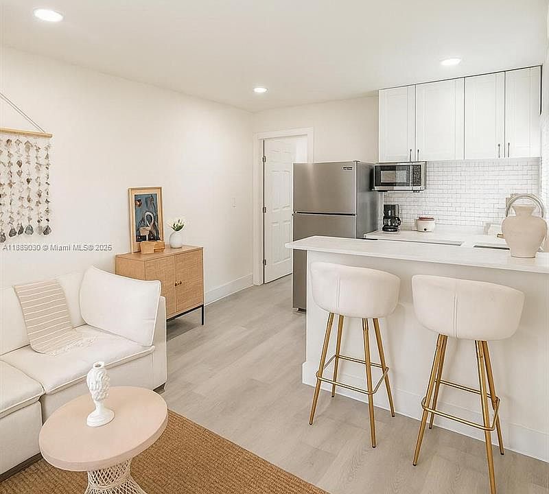 Charming and modern 1 bed, 1 bath home in the heart of Miami (33142). This bright residence features an open living area with a cozy lounge, updated kitchen with stainless steel appliances, white shaker cabinets, and subway tile backsplash. The spacious bedroom offers comfort with natural light and a sleek design. Enjoy the convenience of a full-size washer and dryer, ample closet storage, and a clean, stylish bathroom. Neutral tones, recessed lighting, and modern finishes create a warm, inviting space. Perfectly located near shops, dining, and major roads, this home combines comfort and accessibility. Move-in ready and ideal for anyone seeking a stylish retreat in Miami.