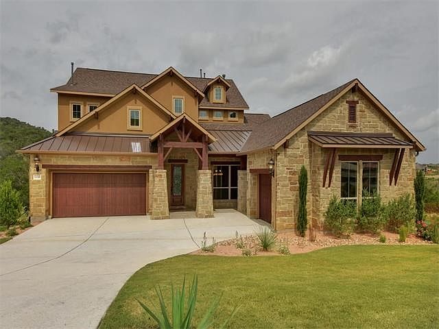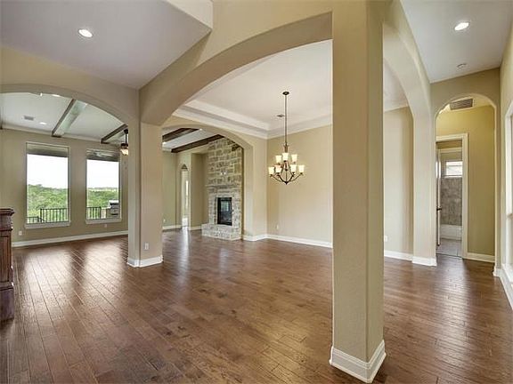 Two story family home backs to green space with privacy and views for miles. 4003 sqft (per builder) 5 bed, or SIX bedrooms (study has large WIC) 4 bath, study, game room/media, 3 car garage, 1 story covered verandas with outdoor kitchen to enjoy the views. High ceilings, gourmet kitchen with custom island and Jenn Air professional series appliances, wood flooring and exquisite designer finishes throughout.