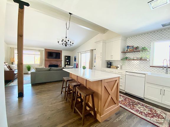 - Exterior features: Fully remodeled kitchen, Heating system: Forced Air, Lawn, No Utilities included in rent, Open layout, Shed, Three wood burning fireplaces