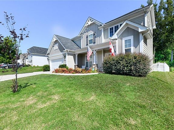 Immediately fall in love with this wonderful, welcoming open concept home. Spacious living room with fireplace and gas logs and beautiful kitchen with large island, granite countertops, SS appliances, pantry, smooth cooktop & built in oven and microwave. Main floor has engineered hardwood floors, guest bedroom suite with full bathroom, and flex room with French doors that could be used for office or playroom. Upstairs has spacious primary suite with engineered hardwoods, upgraded shelving in walk-in closet, separate vanities, and walk-in tiled shower. Upstairs also includes loft area, two more bedrooms, full bath, and large laundry room with extra storage shelving. Garage has extra storage space as well. Retreat to the level backyard perfect for entertaining or relaxing on the screened porch and newly poured expanded patio. Vinyl privacy fence and wooded area behind home adds extra privacy. Neighborhood pool, sidewalks, & playground area. Convenient to recreational activities.