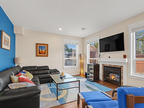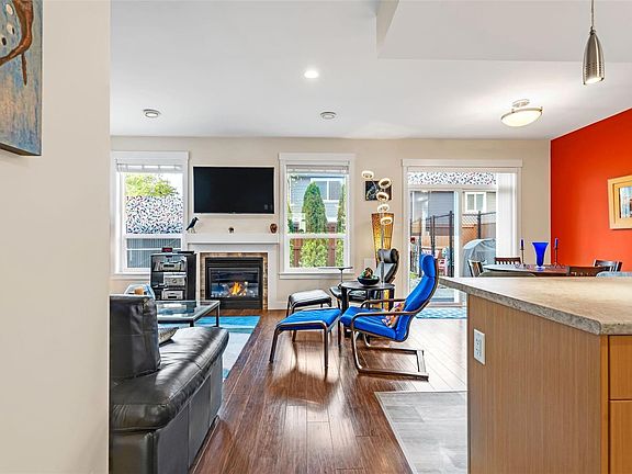 A beautifully maintained & improved upon 2014 home, featuring a bright, open-concept layout with modern finishes. 9’ high ceilings and easy care flooring flow through the main living areas. The spacious kitchen includes full-height cabinetry & a centre island. It opens to a dining area with sliding glass doors leading to an expansive patio, perfect for your BBQ & entertaining outdoors. The living room is filled with natural light from large windows & features a gas fireplace as the focal point. The den/office with a large picture window provides a perfect work-from-home space beside the front entrance. Upstairs, the primary suite offers a walk-in closet & a luxurious ensuite with a soaker tub and glass-enclosed shower with tiled surround. 2 additional bright bedrooms & a full bathroom with tub/shower combo complete the upper floor. The property features mature bushes & plants offering great curb appeal. Located in a family-friendly neighbourhood close to parks, schools & all amenities.