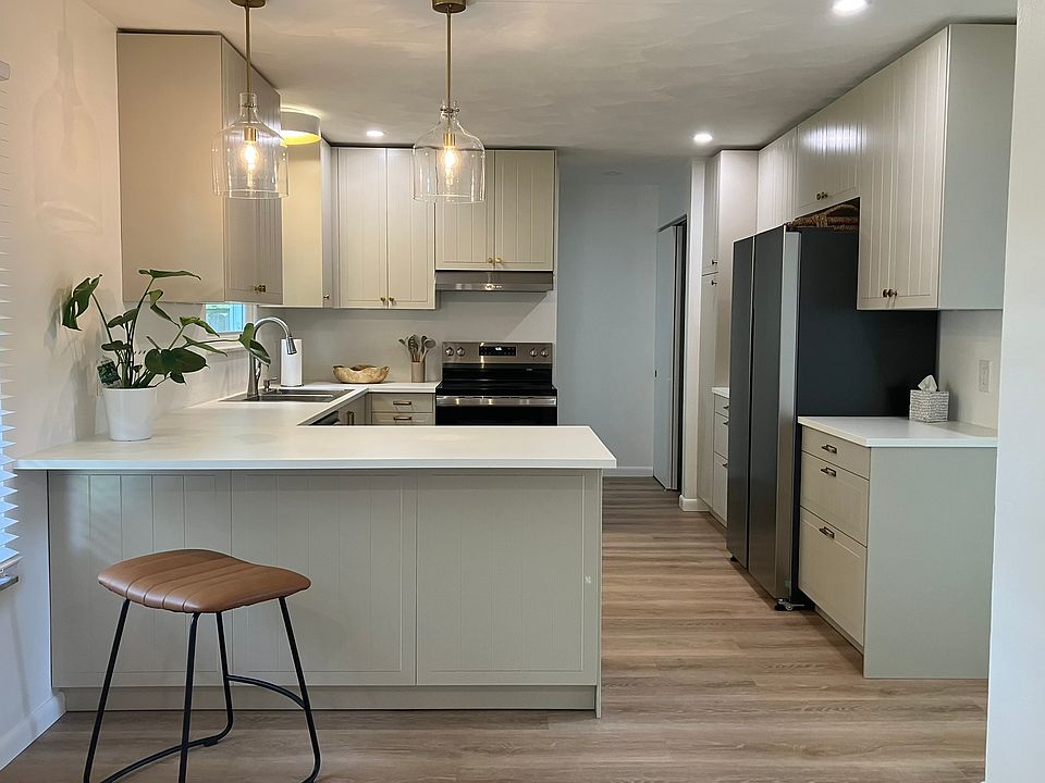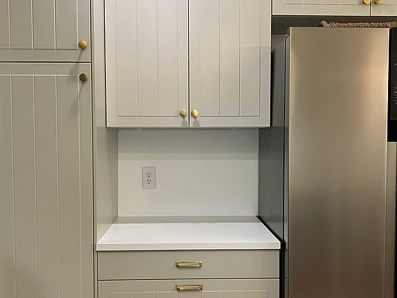 Electric fireplaceFenced yardLots of storageLarge partially finished basementBeautiful kitchenBrand new refrigerator