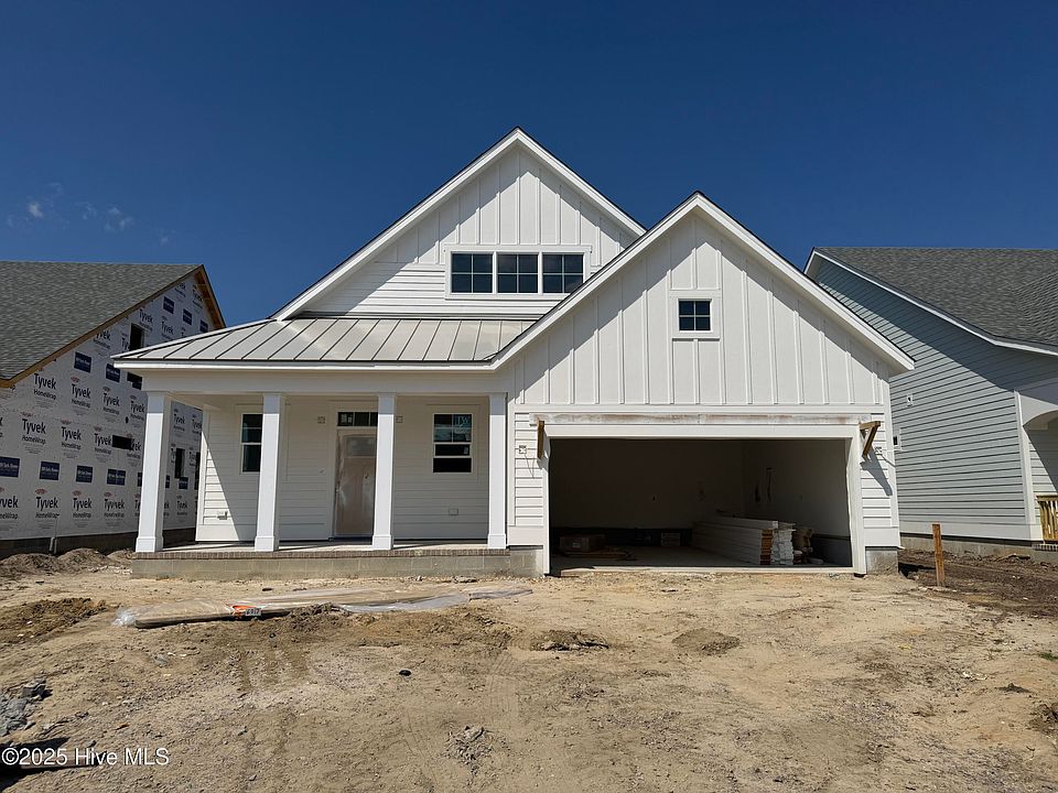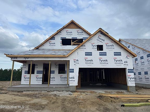 Discover this charming 1,797 square foot, 3-bedroom, 2.5-bathroom Oakley home in Collingwood Cottages at Cape Fear National in Brunswick Forest. Crafted by Legacy Homes by Bill Clark, this brand-new construction welcomes you with coastal curb appeal, featuring a front porch with metal roof accent and wood trellis over the garage. Enjoy ultimate privacy with this home backing directly to a scenic nature area, offering natural beauty right in your backyard. Step inside this cozy single-story home to discover a thoughtfully designed open floor plan. The chef's kitchen flows seamlessly into the great room, highlighted by a 10-foot tray with coffered ceiling trim detail. The spacious primary suite features a walk-in closet with custom white wood shelving and a beautiful bathroom with a large walk-in shower. Additional conveniences include a large pantry, oversized laundry room, and a jack-and-jill bathroom located between bedrooms 2 and 3. Center-meet sliding doors from the great room lead to exceptional outdoor living spaces. The screened porch provides the perfect retreat for enjoying mature nature views, while the adjacent grilling patio features a charming brick border—ideal for outdoor entertaining year-round. Located in the coveted Cape Fear National neighborhood, Collingwood Cottage residents enjoy low-maintenance living with HOA-included lawn care and access to all the lifestyle amenities of this renowned master-planned community in Brunswick Forest.