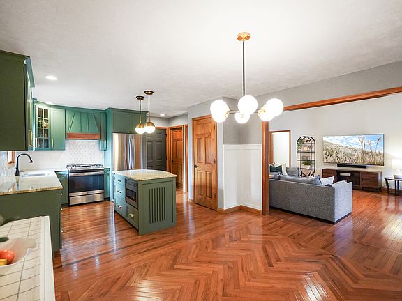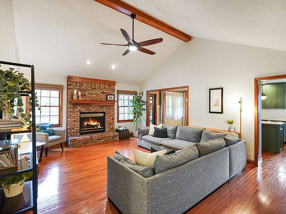 All-Brick Beauty with Modern Upgrades and Open Concept Living! Step inside this stunning all-brick ranch showcasing a completely updated kitchen with custom 42" cabinets, stylish backsplash, and gleaming hardwood floors. The dining area features beautiful hardwoods with a herringbone inlay-an elegant touch that sets the tone. Relax in the spacious living area with a cozy gas fireplace or enjoy a seamless flow into the heated and cooled sunroom-perfect for year-round comfort. The new master bath impresses with porcelain tile and glass accents, creating a spa-like retreat. Outside, you'll find a large open patio and a brand-new deck overlooking the fully fenced backyard-ideal for entertaining or unwinding. A finished two-car garage adds convenience and extra appeal. This home blends timeless brick construction with fresh, thoughtful updates-move-in ready and made for modern living!