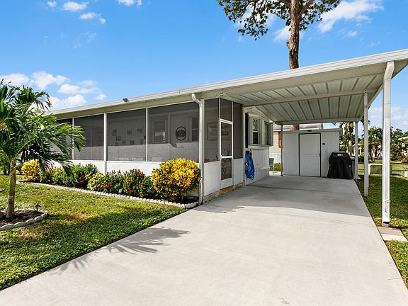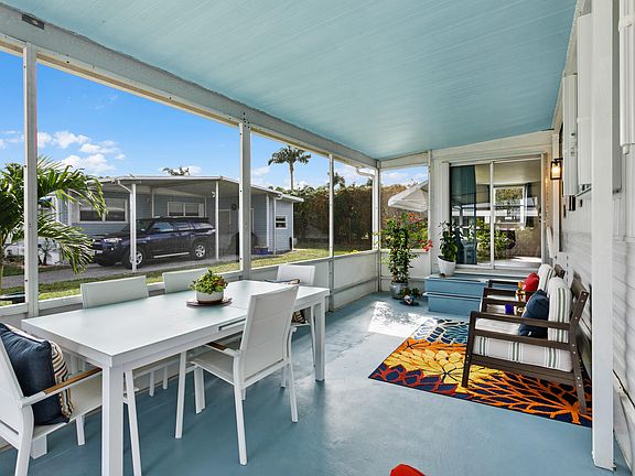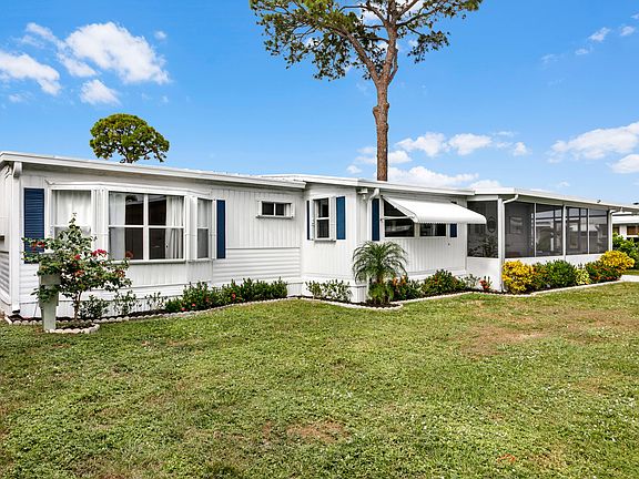 A Must See. Completely remodeled with top of the line products. Kitchen has Designer Cabinetry, quartz counters, Brand New Light Fixtures, Subway title with imported Italian Inlays. Brand new appliances and Pantry. Eat In Kitchen that opens to large living area. Waterproof Vinyl Flooring throughout entire home. 3 Bedrooms and 2 1/2 Bathrooms. One bedroom is being used as a den/office and has the 1/2 Bathroom, remodeled with custom vanity and new toilet. Large Size Stackable Washer and Dryer inside home. Main Bedroom has wall to wall closets and plenty of room. The Main Bathroom has long vanity and Step Shower. Guest Bedroom has plenty of closet space and natural Light with Bay Windows. Remodeled Guest Bathroom with Tub. This home comes complete with BRAND New Furniture. Newer A/C and Water Heater. Brand New Windows with Hurricane Protection, some have new Accordion Shutters and some have Awnings. Enjoy your Screened in Patio with the Eastern Breeze, Great Entertainment Space, or enjoy the beautiful sunsets on your open Deck and Patio. There is nothing to do in this home except move in. Home is located at the end of the Cul De Sac with plenty of green space for privacy. Call today for a showing. Come enjoy the Florida Sunshine in this Active Adult Community with 24 hour Manned Gate, Heated Pools, Billiards Library, Shuffleboard, Bingo, Cards, Shuffleboard and so much more. Low monthly fee of $250.00 includes lawn care, water, sewer, fiberoptic internet, manager onsite and more. NO Land Lease. Motorcycle Parking and RV Storage available.