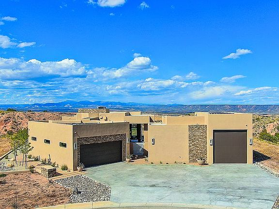 Total under roof 4700 square feet. Main House square footage 2265. Detached Casita of 575 square feet. Main garage 710 square feet. RV garage 457 square feet. Covered patios of 693 square feet. Superior views that will never be blocked of the Sandia, Ortiz, Santa Fe and Jemez mountain ranges. Features include Radiant floors throughout. 16 foot pocket door in main living room. Also Forced A/C and Heat. Pool 50’ x 12’ with enclosed equipment room. Outdoor 1/2 bath. Outdoor Shower. Sunken fire pit area. Covered Outdoor kitchen with fireplace and TV. Water catchment system internal to the house walls that run to two 2500 gallon cisterns. 25 LG solar panels. RV garage with 30 amp and dump station within garage that also has soft water plumbed. Smart home. Professionally Landscaped front and back. Dog run area that is raptor, snake and coyote proof.