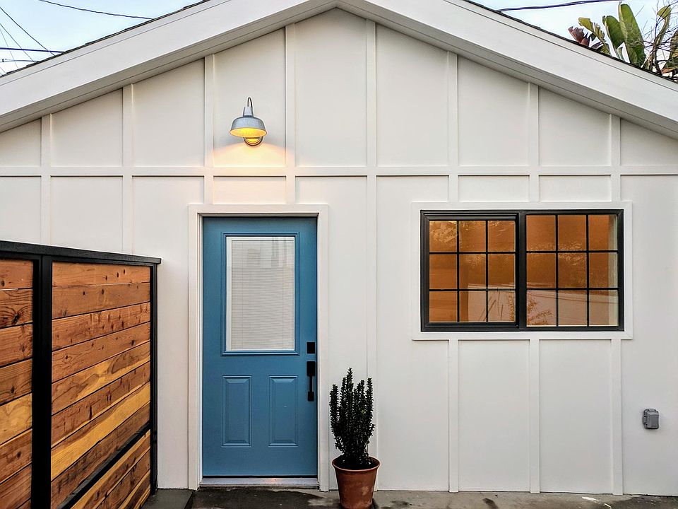Modern Farmhouse Guest House Studio Apartment Detached studio guest house located in the quiet, quaint section of Westchester, walking distance to Silicon Beach, Loyola University & shopping. Features include a private gated entrance, full kitchen with new appliances, large open living area with vaulted ceilings, marble bathroom with walk-in shower and two private outdoor garden patios. Owner pays for water & garbage. Tenant pays gas, electric & internet. (All utilities are on separate meters) One year minimum lease agreement. No smoking. Application & credit check required. (fee) One small dog will be considered.