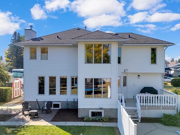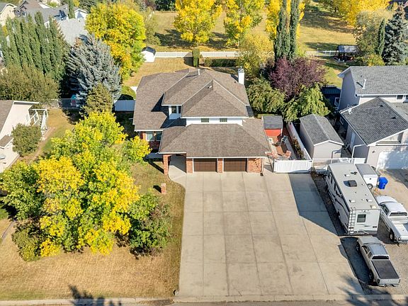 This beautifully renovated two-storey home sits on a stunning half-acre lot in one of the most desirable areas of Olds—backing directly onto one of the community's finest parks. With exceptional curb appeal, mature trees, lush landscaping, and a timeless blend of brick and updated vinyl siding, this property makes a lasting first impression. Inside, the home has been fully renovated throughout, seamlessly blending modern updates with classic charm. Step into a bright and airy foyer with vaulted ceilings that lead into a spacious and inviting main floor layout. The main level features a formal dining room, a well-appointed eat-in kitchen with ample cabinetry and modern finishes, and a large living room with a cozy fireplace—perfect for gatherings. A 2-piece bathroom and a convenient main floor laundry room add to the home's functionality. Upstairs, a cozy reading nook and open library area provide a unique and inviting space (or potential for an additional bedroom). The spacious primary suite includes French doors, a walk-in closet, and a beautifully updated 5-piece ensuite. Two more generously sized bedrooms and a renovated 5-piece main bathroom complete the upper level. The finished basement offers a brand-new, fully self-contained legal suite—complete with its own entrance, kitchen, bathroom, and living space. This is perfect for generational living, guests, or rental income potential, providing privacy and independence for extended family or tenants. In addition to the suite, the basement also includes a separate fourth bedroom and dedicated storage area, providing even more flexibility and space for your family's needs. Additional upgrades include a reverse osmosis system and whole-house carbon water filter, ensuring clean, high-quality water throughout the home. Outside, you'll enjoy ultimate privacy and outdoor living with mature fruit trees, a dedicated garden space, RV parking, and a large deck ideal for entertaining or relaxing. The existing garage provides ample parking and storage, with the potential to add an additional bay—offering even more versatility for vehicles, hobbies, or a workshop. This is a rare opportunity to own a move-in-ready home in a quiet, highly sought-after neighborhood with unbeatable park access, room to grow and thoughtful features throughout. Whether you're looking for a family-friendly forever home or a flexible property with income and multi-generational potential, this home truly has it all. Call today to book your private tour!!