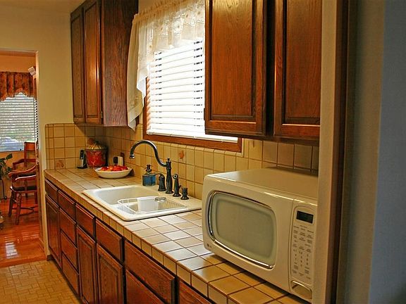 Turnkey home in the Lakewood Gardens' Community. Welcoming front porch and entrance. Come in the cozy living room with gas fireplace on your right and dining room on your left adjacent to the kitchen with ceramic countertops and newer kitchen flooring with separate laundry room. Newly remodeled bathroom with extra storage space, separate stall shower and a tub. Comfortable bedrooms, one of them has a newer sliding glass door exiting to the backyard. New smooth ceilings through out the home. New central heater and central air conditioner. You will enjoy the beautifully landscaped backyard with beautiful trees, rock garden and huge relaxing overhead covered patio with expansive concrete walkways though out the back yard. This is a gem.