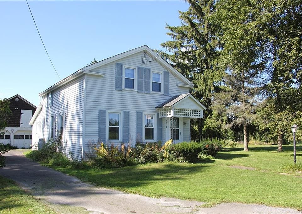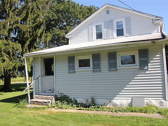 3 Bedroom house with 2 car garage/barn space and storage on .68 acre. Beautiful country setting. Level yard with some trees. Many newer windows and hard wood floors in some rooms. Kitchen at the back of the house, living room at the front with a side room for an office/bonus room. First floor full bath and one bedroom on first floor. Upstairs is two bedrooms with a big closet that may be able to be turned into a half bath.
