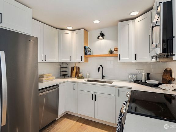 Estate Sale in coveted "Panorama View" neighborhood in Seattle. One owner home Meticulously maintained w/Pride in Ownership for over 65+ years! Recently remodeled to perfection, cutting no costs or expenses to do it right! Kitchen w/soft close Cabinets & Drawers, Stainless Appliances, Quartz Counters, Subway Tile Backsplashes, Floating Shelf above the Sink. Main level w/gorgeous Engineered Hardwood floors, new Solid core wood doors, new Trim and Baseboards, Fresh Paint, Remodeled full Bath plus two Bedrooms. Lower level w/new Bonus room, new Carpeting & new 3/4 Bath adjacent to spacious Primary Bedroom. Secured covered parking w/room for 4 Cars in the Driveway. Entertaining outdoor spaces w/firepit & exquisite landscaping. New Roof & A/C!
