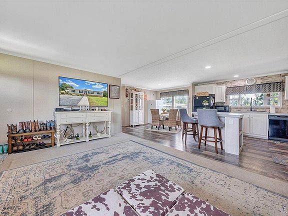 Enjoy single-level living on over 1.5 acres with mountain views as your backdrop. Step inside to a bright, inviting interior with neutral tones, laminate flooring, and carpet throughout. The spacious great room flows seamlessly into the dining area and kitchen, featuring abundant cabinetry, generous counter space, and a curved island perfect for meal prep or casual dining. A separate den offers endless possibilities: home office, playroom, or media space. The split-bedroom design ensures privacy, with a primary suite boasting a walk-in closet and full bath on one side, and two additional bedrooms with a full bath on the other. A dedicated laundry room adds everyday ease. Outdoors, unwind on the covered deck, entertain in the fenced yard, or simply take in the views. A detached 2-car carport, storage shed, landscaping, and plenty of room to roam complete this move-in ready package!