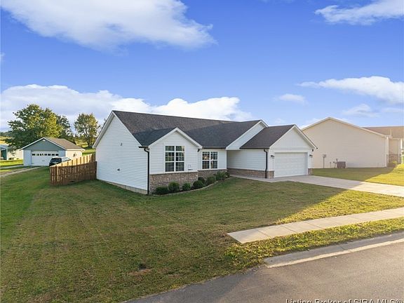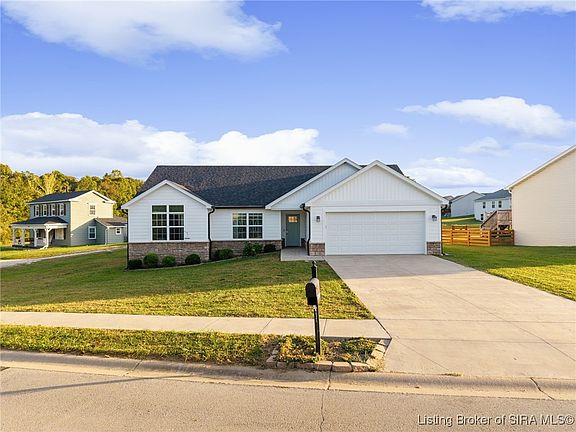 A must see home in highly sought after Brookstone neighborhood within the award-winning Floyd Central School District! This beautifully maintained 3 bedroom, 2 bath home built in 2020 is perfectly designed for modern living with a split floor plan, ideal for privacy and comfort. The eat-in kitchen has granite countertops with modern appliances - all kitchen appliances are included. The windows throughout invite natural light, creating a warm cozy atmosphere. The primary bedroom with en-suite is separated from the secondary bedrooms, making it a true retreat. Enjoy the convenience of a completely brand new roof, a 2-car attached garage, as well as a fully fenced backyard perfect for pets, play, or relaxing evenings under the stars on the patio. Tucked away in a peaceful neighborhood, this home is just a short walk to Floyd County Regional Park/Nature Preserve, giving you easy access to trails, green space, and year-round recreation but still only a 15 minute drive to Louisville. Don't miss this opportunity to own a well maintained move-in ready home in one of Georgetown’s most desirable locations where small-town charm meets everyday convenience and natural beauty.