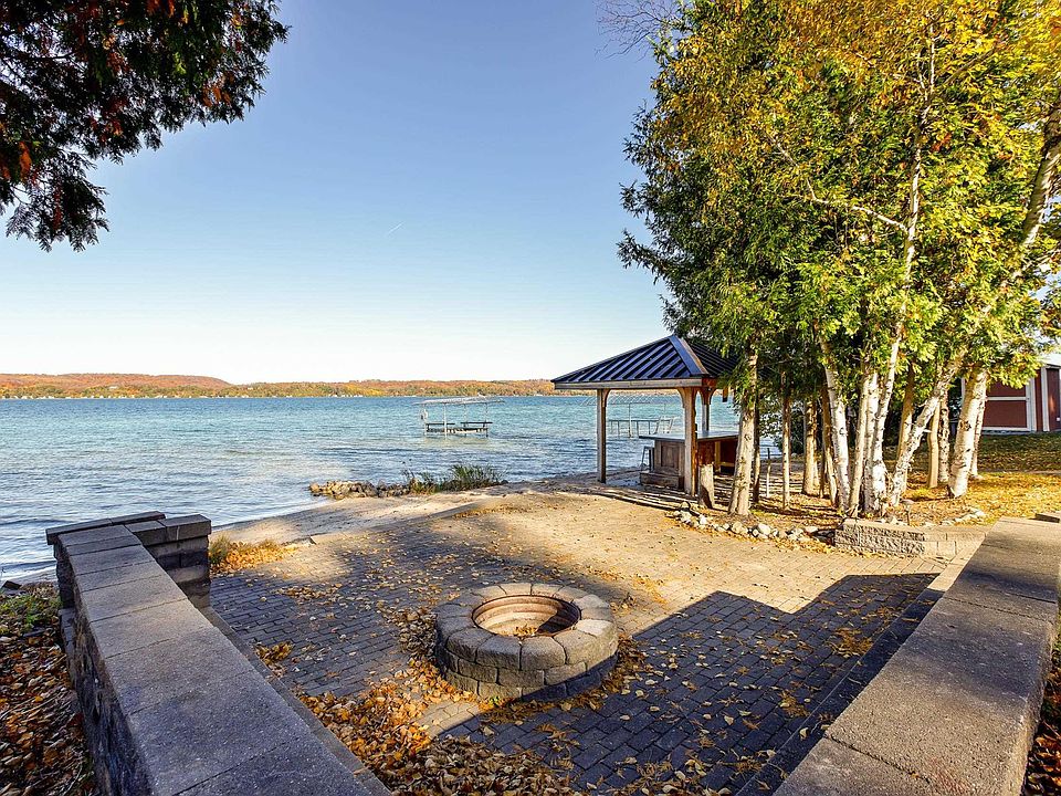 Gas fireplaceTiki hutFinished lower levelExpansive lake-view windowsGenerous islandWaterfront homePanoramic lake views