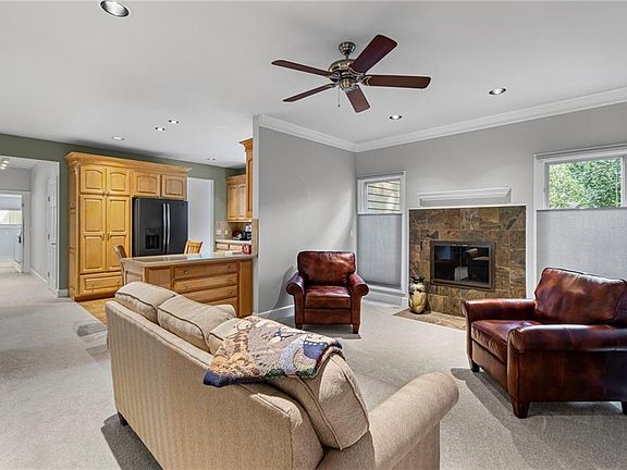 This superior Lambie Geer-built ranch home combines timeless craftsmanship with thoughtful design, featuring an all-brick exterior that exudes both durability and elegance. The spacious living room is generously sized to accommodate gatherings and is highlighted by a gas-starter, wood-burning fireplace that adds warmth and charm. At the heart of the home, the kitchen showcases custom maple cabinetry, Corian countertops, and upgraded appliances, blending beauty with functionality. A cozy library with rich built-in bookcases offers the perfect retreat for reading or work, while the formal dining room provides additional space for entertaining on special occasions.
