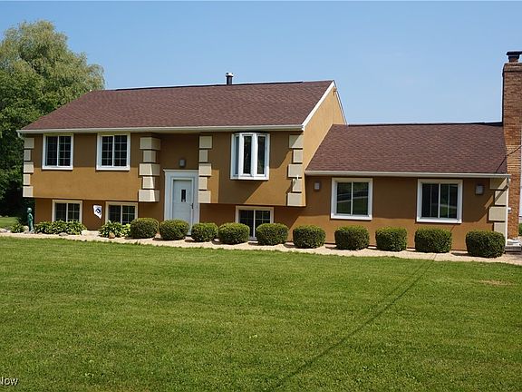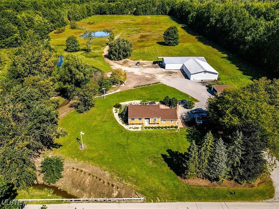 Fabulous farm opportunity: Originally a Thoroughbred horse farm, this 35+/- acre serene property offers versatility, serenity, nature, possible development and loads of opportunity! A beautiful combination of 2 clear fields ( 1-10acres, 1-25acres) separated by tree line, 1 planted w/timothy hay, 2 stocked ponds, winding Indian Creek, tranquility, peaceful star lit nights, 2400 SQ FT home, 850’ frontage, 36 x16 deck, stamped concrete patio, massive 7000 Sq Ft metal outbuilding, 2 car garage, abundant wildlife (trophy deer, steelhead trout, heron, ducks, loon, white cranes, mink, turtles, eagle, fox), professionally landscaped, cherry trees, vegetable/herb garden, oversize driveway and parking areas. The tri-level house: main level boasts living room, eat-in kitchen w/Lebonese granite & SS appliances including trash compactor and built-in wine bar, primary bedroom w/ensuite, 2nd bedroom & full bath. The spacious lower level features a 3rd bedroom, full bath and large family/bonus room w/cozy gas fireplace (possible in-law suite), mechanical/laundry room. Third level branches off and is perfect for entertaining with a large great recreation room w/ WB fireplace & vintage cool wet bar. Recent updates include: Furnace 2019, water heater 2023, sump pump 2024, roof 2021, Laminate flooring 2024, Private gas well w/ unlimited free natural gas, city water at road. Conveniently located between Cleveland & Erie, 2 miles from Lake Erie Shoreline, 4 miles to ST RT 90, close to 30+ wineries, Geneva-on-the-Lake, Spire, beaches, marinas, distilleries, breweries, historic Bridge Street in the Ashtabula Harbor, restaurants, galleries, golf courses, covered bridges, fruit orchards. Note: Property is eligible as a Solar Energy Farm for income opportunity! Agricultural Zoning offers endless possibilities! How will you utilize this unique property... a rare find indeed! Click the small film reel icon to view special drone video.