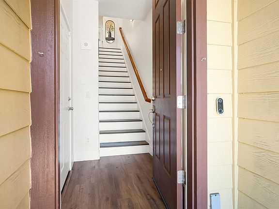 Discover sophisticated urban living in this stunning, move-in-ready townhome that masterfully blends contemporary elegance with everyday functionality. The ground level features a secure two-car tandem garage with workshop space, while the main floor showcases an exceptional open-concept design intertwining the kitchen, breakfast bar, dining area, and living room with rich luxury vinyl plank flooring throughout. The chef-inspired kitchen includes granite countertops, professional-grade gas cooking, stainless steel appliances, and custom shaker cabinetry with designer hardware. A versatile bonus room offers endless possibilities as a home office, entertainment space, or guest suite, complemented by a convenient full bathroom. Step outside to your private oasis—a level, fenced patio with premium artificial turf, perfect for entertaining, pet play, or relaxation. Upstairs, two luxurious en-suite bedrooms each feature spacious walk-in closets, while the primary suite bathroom serves as a spa-like retreat with soaking tub, separate shower, & dual vanity. This exceptionally low-fee HOA community offers a range of resort-style amenities, including a fully-equipped fitness center, elegant clubhouse, dog parks, & multiple playgrounds, creating the perfect environment for elevated living!