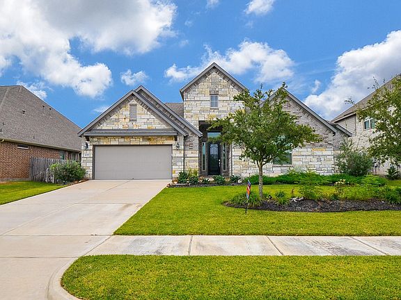 Lovely 4 bedroom in the heart of Katy. This beautiful home boasts soaring ceilings, open concept floorplan, architectural details, and tons of upgrades. The kitchen features granite counters, stainless steel appliances, island with wraparound bar, and large corner pantry. Primary suite features abundant space, double sinks, large soaking tub, separate shower and huge walk in closet. Three secondary bedrooms, all with spacious closets, are located down a separate hallway with two more full bathrooms. Backyard features a very large covered patio perfect for entertaining or just enjoying the outdoors.