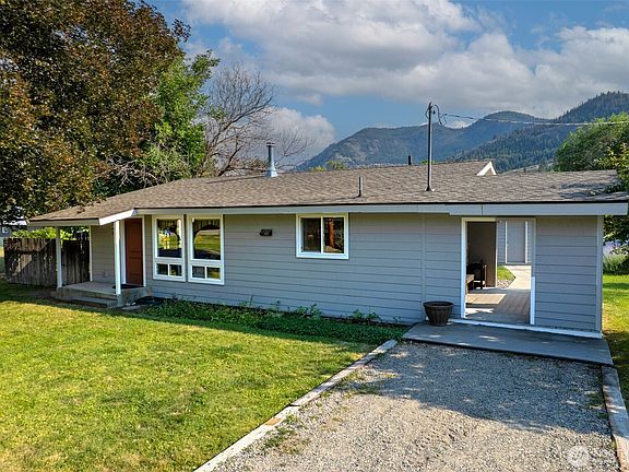 Charming and well-maintained mid-century home in Twisp, offering 1,104 square feet of living space. This home features 3 bedrooms and 1 updated bath. It is equipped with both electric and wood heat, and the kitchen provides ample storage. Enjoy the cozy wood fireplace insert and relax on the covered porch. The property includes a detached 576 square foot garage and a fenced yard with a sunny garden area and fruit trees. This conveniently located home is within walking distance of all the restaurants, shops, and events in Twisp, the heart of the Methow Valley.