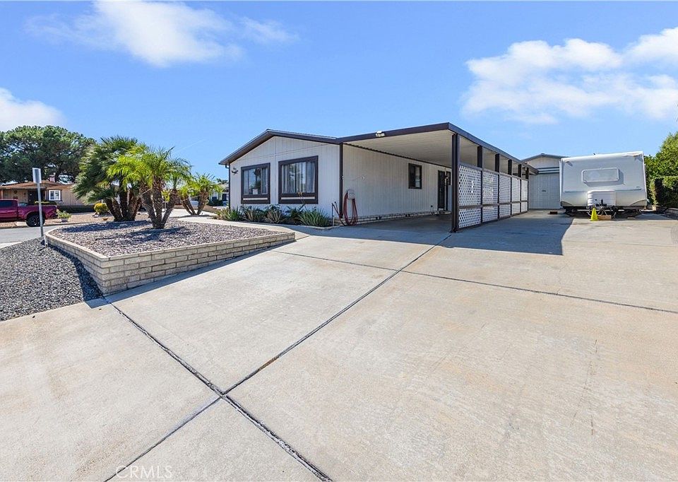 Lovely super clean, turnkey, 2 bedroom- 2-bathroom manufacture home, proudly equipped with solar power. Step inside to discover 1,344 sq ft of comfortable living space thoughtfully laid out for modern living. This home offers low maintenance front and back yar, central A/C and furnace, is set on a permanent foundation, ensuring stability and peace of mind. No HOA means no restrictive rules and no HOA fees, a driveway with RV parking and a convenient dump station and electrical hook-up. The two-car detached garage, and a separated covered carport offer even more parking options. Relax and unwind on the covered front patio, perfect for enjoying your morning coffee or greeting neighbors passing by. Nestled on its own 6534 sq ft lot