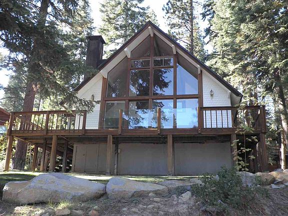 Back on the market at $50,000 less then previously listed, this chalet home on a corner lot offers a bright and sunny south facing setting, with peek lakeviews from the wrap around deck, and even better views from the spacious 2nd story loft looking through the wall of windows in the living room. Living room, kitchen, two bedrooms, bathroom, laundry room and pantry on first floor. Spacious bedroom with vaulted ceilings, bath, and loft on the second floor. This home is a great remodel candidate.