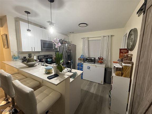 MOTIVATED SELLER! Come and take a look at this newly remodeled home within walking distance to Lehigh Town Center. This home has been remodeled top to bottom inside, new floors, new molding, doors, hardware, kitchen cabinets, paint and granite counter tops. The carport has a side door into a big Florida room that has barn doors into the living area, this could be used for a game room or a living room or a large bedroom. The big yard is great for a dog, or for those with a green thumb. Come and take a look before it is gone. $5,000 Seller concessions towards buyer closing costs and prepaids.