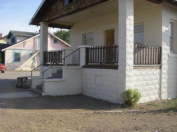 First constructed in 1914 in what was then the mining area of Bisbee in the Warren district. Walk to elementary school and newly renovated award-winning hospital. This home was totally renovated less than 10 years ago with modern plumbing, 200 amp wiring, new furnace, and AC installed. New sewer lines (always a problem in Bisbee!). All appliances included: washer-dryer, gas stove, water heater, fridge. Custom kitchen and bathroom cabinets. Some original built-in cabinet work. Beautiful hardwood floors in living room, hall, and bedrooms (Vinyl in bedrooms, which can be easily removed to refinish to hardwood beneath-floors in great condition) . Large, mostly fenced-in backyard. Move-in condition. Currently occupied, so masks will be required. Please be pre-qualified. No brokers or agents at this time. Thank you.