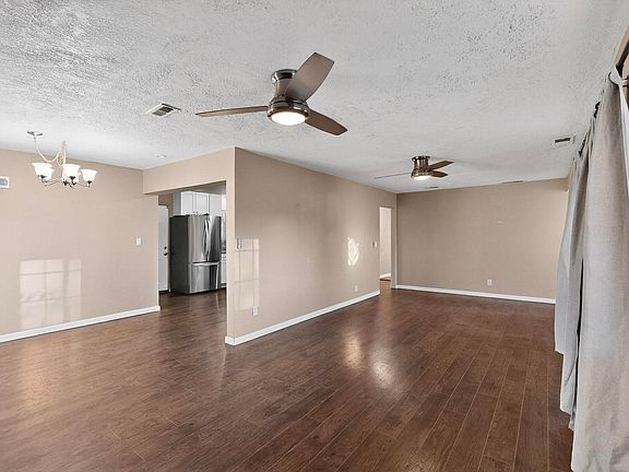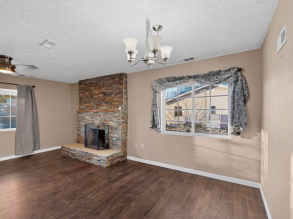 This spacious 5-bedroom home offers plenty of room to spread out and is move-in ready. Situated on a quiet dead-end street, it provides extra privacy while still being only five minutes from the Rail Runner, making commuting to Albuquerque simple and convenient. The interior features recent updates, including newer stainless steel appliances that enhance the bright and inviting kitchen. A cozy wood-burning fireplace creates the perfect atmosphere for cooler evenings, while the private backyard patio offers a peaceful space to unwind or entertain. Comfort, convenience, and a great location come together in this wonderful property.