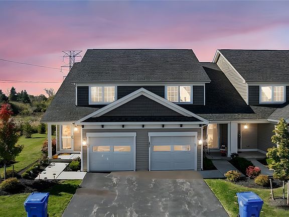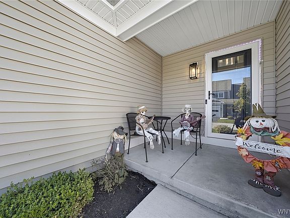 Significant property tax savings! Enjoy maintenance-free living at its best—just in time for winter. No more waking up to snow blowing, shoveling, or exterior maintenance! This beautiful Marrano-built townhome at 602 Carriage Lane in West Seneca offers style, comfort, and convenience. Step into the bright, soaring 2-story foyer with balcony and cathedral ceilings that leads to an open-concept living space filled with natural light, luxurious floors, and neutral tones. The chef’s kitchen is both functional and modern, featuring white craftsman-style cabinets with decorative crown mouldings, elegant gold hardware, quartz countertops, stylish tile backsplash, an expansive island, and generous pantry. The adjacent dinette connects seamlessly to the spacious living room with recessed lighting, lofted ceiling, and sliding doors to a private patio with pavers and maintenance-free vinyl rails—perfect for outdoor entertaining. Completing the main level is a half bath, first-floor laundry, mudroom with exceptional storage, and an attached garage. Upstairs are two large bedrooms, each with a full ensuite bath, plus a versatile loft area ideal for a home office or reading nook. The full basement offers tall ceilings, ample storage, new utilities including on-demand hot water, central A/C, humidifier, and egress window. Snow plowing, shoveling, landscaping, exterior maintenance, water, refuse service, and more are all included—allowing you to simply enjoy your home and community! Conveniently located near Transit Road, shopping, dining, and the 400 expressway.