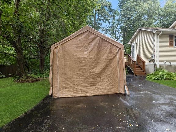 Set back from the road and down a long driveway is where you will find this terrific Ranch style home with 2 bedrooms and 2 1/2 baths. One-level living at its finest! The open flow of this home really makes it special. The XL living room with wood-burning fireplace is open to the dinning room and kitchen. The updated kitchen is centered by an island and looks out onto a huge two-level rear deck just beyond the sliders. Newer armoire-style stainless steel fridge is complimented by a dishwasher, microwave and oven/range for the chef in your life. There are hardwoods throughout the home except for one of the bedrooms which is carpeted. The Primary Bedroom is en-suite with its own private bath with shower. The other full bathroom serves the second bedroom and is great for guests too. The laundry room is opposite the full bathroom and includes a washer & dryer. Head downstairs to the partially finished basement and find a huge rec room with a pool table, cabinetry, fridge and stand alone freezer. There is also a half-bathroom down here which works great when you're entertaining or watching the big game. You will also find three additional storage rooms. The lot is amazing as it is just over a half acre and includes two sheds and a carport. The home has A/C via a ductless unit in each room on the main level. Estate sale. Property is being sold in "AS IS" condition. This home has been professionally cleaned. Great location on MA border! (Landscaping images enhanced for seasonality)