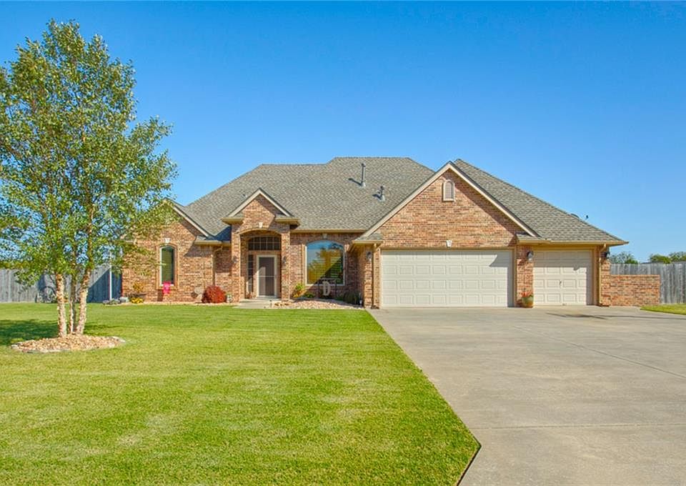 The pride of ownership shines throughout this home. Beautiful 3 bedroom, 2 bath, 3 car garage, is located in Chickasaw Springs Estates. Almost 3/4 of an acre (MOL). Tuttle Schools. 15x36 in-ground sports pool, exceptionally large deck with Rot Iron Railing (pool pump replaced 2020). You will find an open floor plan with an office that is enclosed with glass french doors. In the living room is a gas log fireplace, crown molding, 2" faux blinds throughout. Large master bedroom with walk-in closet and builtin dresser, his and her sinks, whirlpool tub and separate shower. Roof and guttering replaced July 2020, Anderson windows installed 2019, Carpet replaced 2017, interior/exterior paint 2017, sprinkler system, "whole house" Generac generator installed 2018. Be sure and checkout the awesome garage (Epoxy flooring, built-in cabinets and storm shelter). LED lighting throughout the home. This home sits on a corner lot with great curb appeal and mature landscaping. Easy access to Hwy 37.