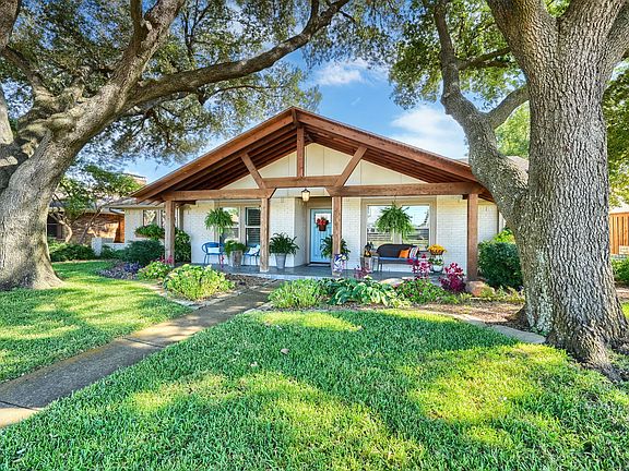 Walking up to the inviting front porch, you'll be greeted by a vaulted roof and elegant cedar plank posts that set the tone for this beautifully updated home in the highly desirable Trails neighborhood. Inside, the home offers a seamless blend of modern upgrades and timeless charm, creating a warm and welcoming atmosphere perfect for families and entertaining. With three spacious bedrooms and two full bathrooms, the layout includes two generous living areas one of which can serve as a home office providing flexibility and comfort across 2,169 square feet of living space. The heart of the home is the stunning kitchen, a chef’s dream featuring quartz countertops, custom cabinetry with under-cabinet lighting, a breakfast bar, coffee station, and recessed lighting that enhances both everyday meals and special gatherings. The living room centers around a cozy gas log fireplace, ideal for relaxing evenings. The master suite is a true retreat, complete with his-and-hers vanities, a large walk-in shower, and updated finishes that reflect thoughtful design. Additional highlights include newer windows, a spacious laundry room with extra storage, a folding area, and a mudroom—every detail carefully considered for convenience and style.Step outside to enjoy the covered back porch, perfect for hosting summer barbecues, while the fenced backyard offers privacy and space to unwind. Located directly across from Audubon Park, residents have access to hiking and biking trails, frisbee golf, a waterpark, playgrounds, and pavilions. The home is also close to Mesquite Golf Course, Trails Community Center, Audubon Recreation Center, and a variety of shopping and dining options, making it both peaceful and conveniently situated.This home is truly a must-see, offering comfort, style, and modern amenities in a vibrant, friendly community. Schedule your tour today and experience the charm for yourself.