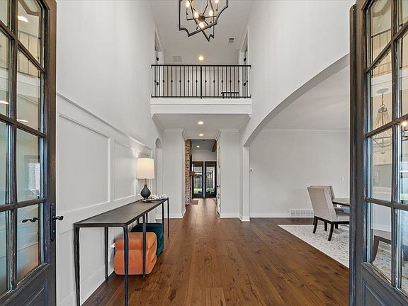 Refined luxury meets timeless design in this exceptional home featuring 2 bedrooms on the main level with open floor plan and beautiful hardwood floors perfect for entertaining. Upstairs you will find 3 additional bedrooms, complemented by a spacious bonus room and a future optional media room. Every detail has been thoughtfully curated — from the farmhouse sink and designer lighting to custom cabinetry and exquisite stone countertops. Premium finishes continue with Pella windows, James Hardie siding and trim, and hand-selected brick accents. Enjoy elevated outdoor living on expansive covered porches at both the front and rear, blending sophistication and comfort in every space.