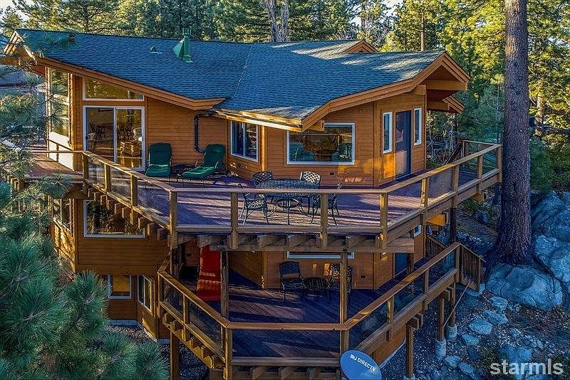 Year Round Sun, Level Access, Stunning Lake, Mountain, Ski Run, & Casino Views from this Alpine Enclave!!! Adjacent to forest service land in Dynamic Zephyr Heights! Open Beamed Wood Ceilings, Gourmet Kitchen with breakfast bar, opens to a Great Room & large fireplace, for optimal entertaining. Dual Master Suites offer the best accommodations for multiple guests! Wraparound decks afford a myriad of Sierra Nevada vistas! Dumb waiter in garage transports groceries directly to the kitchen. Plenty of room for large groups with beautiful views from every room, plus Casino Lights at Night! Near numerous beaches, and all of Tahoe's Fun & Games!!!