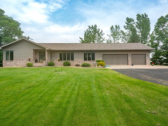 This gorgeous home in the Village of Plainfield sits on 1.42 acres. Featuring 4 spacious bedrooms, (all with double closets), main level master suite with jetted bathtub, 3.5 bathrooms, laundry room, living rooms and kitchen on each level, asphalt driveway, concrete patio with raised garden beds, underground sprinkler system, electric perimeter dog fence, whole house intercom system, 3.5 car heated attached garage and 2 car detached garage, Geothermal Heat and Central Air. New Roof in 2022. Skylights and huge windows throughout, the natural lighting is absolutely beautiful! Home just had interior repainted on main and lower level. Plenty of room to entertain your friends and family!