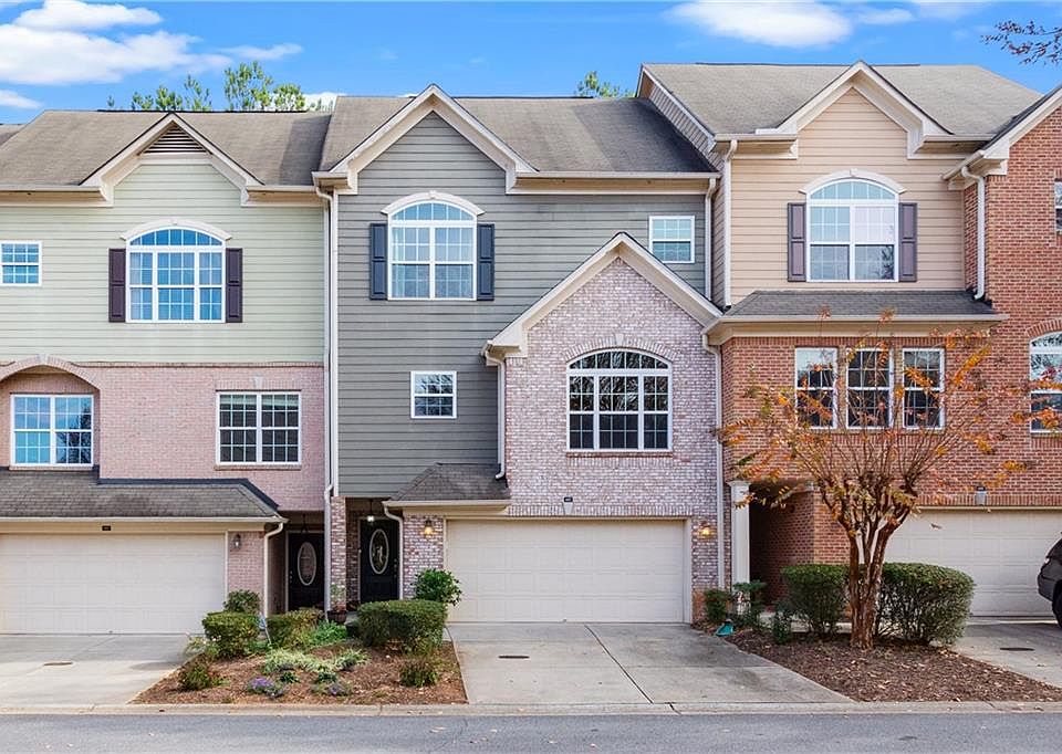 Vacant and Move in Ready! Don't wait - this is a hidden gem waiting for you! This beautiful, well-maintained 3-bedroom/3.5-bath home is located in a gated, quiet neighborhood with sidewalks, well-lit streets, a dog park, and a resort-style pool with a tanning ledge. Or, when the outside world is calling your name, Marietta Square, The Battery, Truist Park, Kennesaw Mountain, and retail shopping, I-75 and Cobb Parkway US-41 are accessible within minutes. Cozy up to the double-sided fireplace and 75” TV in the living room, or cook a meal in the spacious kitchen furnished with granite counters, under cabinet lighting, and modern appliances. Plenty of natural lighting shows off the spacious rooms with 9’ ceilings and beautiful hardwood floors as you walk through the french doors and onto the private deck with wooded views. This open-concept floor plan is perfect for entertaining friends and family! The main and additional bedrooms and laundry areas are conveniently located together—the laundry is equipped with a new washer and dryer, both less than a year old. Relax away in the oversized master bedroom with ornamental crown molding, 9’ tray ceilings, and a master bath with a soaking tub - worth retreating to! Downstairs, the room with a full bath converts nicely into additional guest space, an office or den – queen-size futon and wardrobe closet included. Energy efficient! This home has a new (<1yr) water heater, outdoor unit heat pump, indoor unit air handler, and two programmable thermostats. 75" TV, TV Stand, Refrigerator, Washer and dryer, Queen Size Futon, Wardrobe Cabinet, Bar Stools, 24” Safe, Cube Shelving, L-shaped desk, and Patio Set all stay with the home, and all less than three years old! Call your favorite realtor to schedule your showing today.